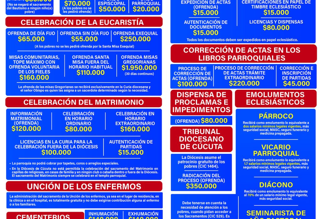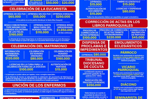 Da a conocer los aranceles validos a partir del 1 de enero de 2026 DECRETO N° 063-2025 (1 de noviembre de 2025) El plan amoroso de Dios es la salvación de todos los hombres y la Iglesia por medio de los clérigos busca encontrar los medios oportunos para entregar estos dones de gracia y de…