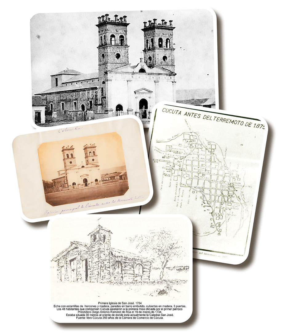 Posteriormente, según el relato del profesor Miguel Palacios en “crónicas de Cúcuta”, el 12 mayo 1889 se habría colocado la primera piedra nueva después de la destrucción del primer templo por el terremoto de 1875. En el año 1905 se habría dado un nuevo impulso a la construcción del templo y el 10 de mayo 1907, se habría bendecido el arco del altar mayor. El 29 de junio 1908 se celebró la primera eucaristía con la nave central techada y en el año 1926 debido a la gran extensión de la parroquia se creó una nueva bajo el patrocinio de San Antonio de Padua 6 .