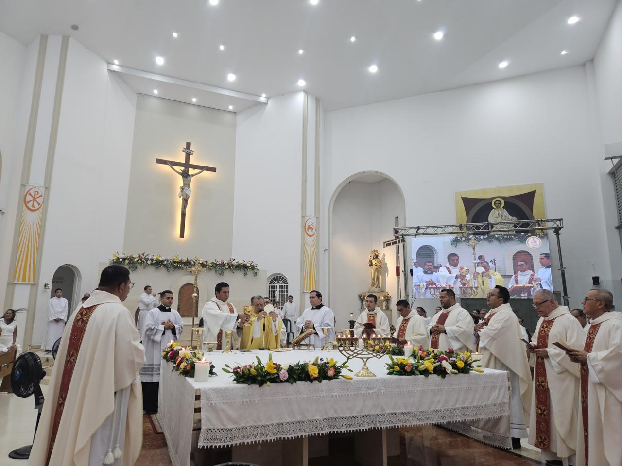 La celebración eucarística, presidida por Monseñor Óscar Urbina Ortega, obispo emérito, y concelebrada por miembros del clero diocesano, fue un momento cargado de espiritualidad y comunión para toda la comunidad parroquial y la Diócesis de Cúcuta. Durante la homilía, Monseñor Urbina destacó que este Jubi­leo es una invitación a renovar la fe, la esperanza y el compromiso evangeliza­dor, siguiendo el ejemplo de Cristo.