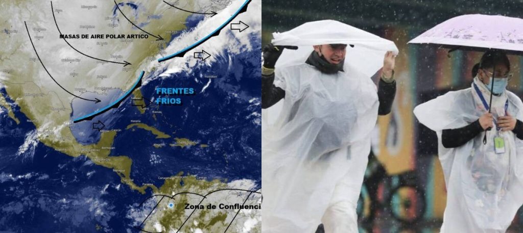 Mapas meteorológicos compartidos por el especialista muestran el frente descendiendo desde el norte hacia Centroamérica y el norte de Sudamérica. Autoridades departamentales llaman a la alerta para prevenir inundaciones y variaciones en el nivel del mar.