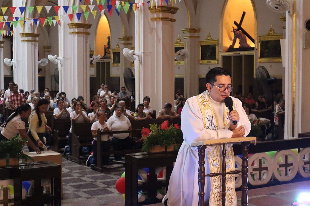 El pbro. Luis Armando Quintero párroco del Inmaculado Corazón de María, habló sobre la salvación presente en cada casa.